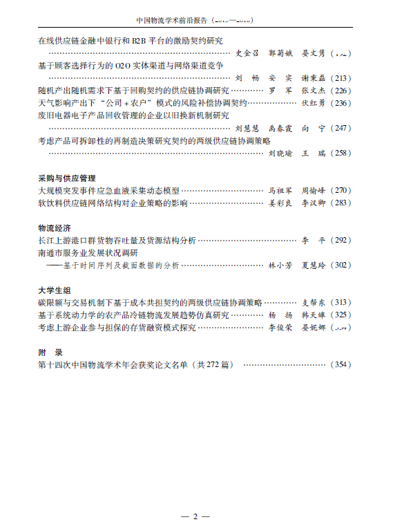 中国物流学术前沿报告