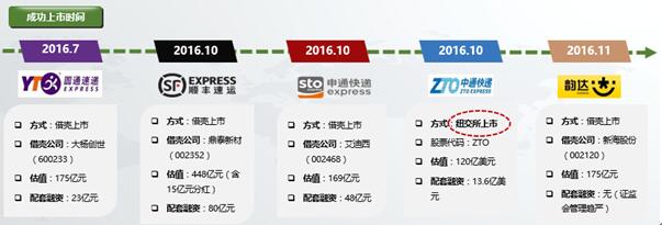 自申通在2015年8月宣布借壳艾迪西上市以来,今年圆通、顺丰和韵达又分别宣布借壳上市,中通也完成在美国上市。2016年成为我国快递企业上市年,把快递企业的资本运作推向高潮,快递正式进入资本时代。