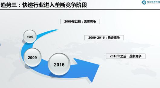 快递业在2009年之前属于无序竞争,2009-2016年处于稳定竞争阶段,而2016年后进入垄断竞争阶段。
