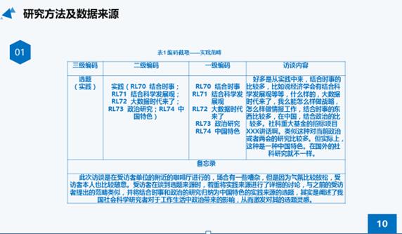 (2)理论抽样:根据初步抽样的分析结果确定进一步的数据来源,并实际进行数据收集与分析。