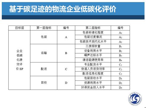 张梦雅老师建立了基于碳足迹的物流企业低碳化评价,并根据层次分析法和模糊评价法综合确定了权重。