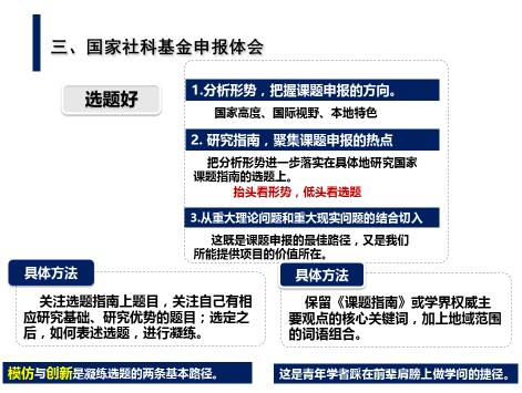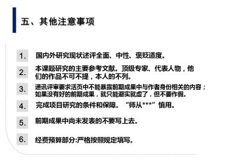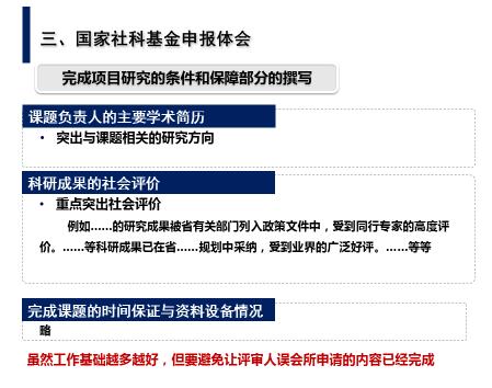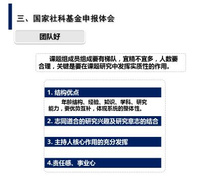 前期成果准备:国家课题、特别是基础性研究,要厚积薄发,围绕课题长期准备,有较为稳定的研究方向、相关的一系列论文,具有说服力。