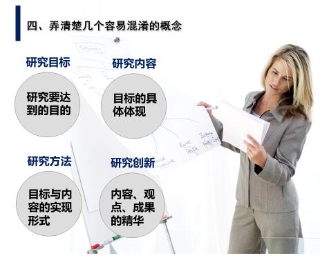 研究内容观点要鲜明,突出重点;避免研究内容过于庞杂,主要观点无法突显;与目标相辅相成,为研究目标服务;难点一般指不容易实现的问题。