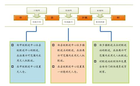 将传统的公路运输、铁路运输、水运、空运以及无人机和“缆车技术+”技术等有机地结合起来,形成多联式运输与配送方式,构建出更为科学合理的面向农村电商物流的“快捷”配送体系,破除制约我国农村电子商务发展的物流 “最后一公里”配送瓶颈,建立起高效的城乡一体化、网络化、社会化的供应链管理体系。