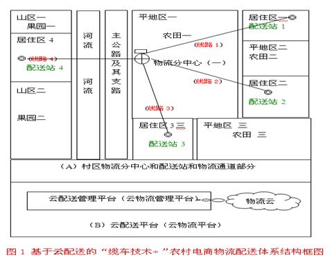 (1)基于云配送的农村电商物流“缆车技术+”模式模型的构建