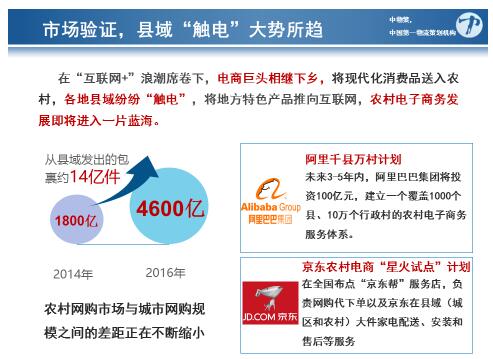 ②农村电商快速发展。预计全国农村网购市场规模到2018年将达到2500亿元,我国现有农村物流体系不足以支撑农村电子商务发展;
