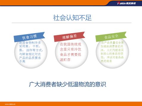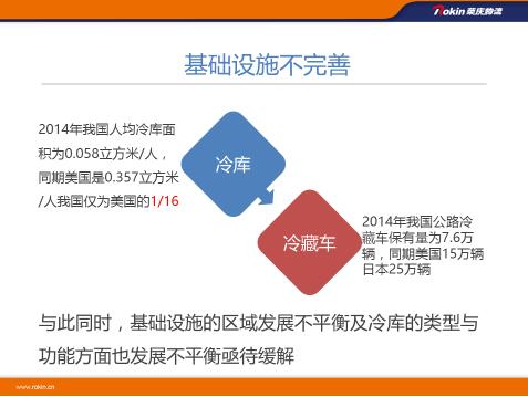 ①冷链物流技术创新严重不足,缺乏低温加工、包装和检测技术,存在制冷技术短板
