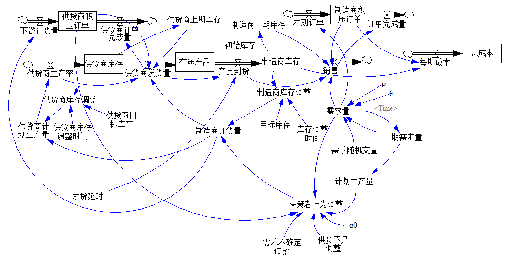 李卓群教授首先建立基本的供应链模型,检验此模型与经典的Sterman模型保持一致,然后修正基本模型的各项参数,使其符合现代供应链的特点,并通过实验验证保证得到的模型与文献给出的实际系统一致;最后在模型中增加对行为因素的考察即三级供应链系统动力学模型,进行仿真实验。