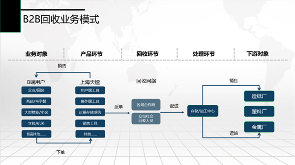 天楹通过线上(APP、微信服务号、网页端、物流管理系统)和线下(社区智能分类回收箱、垃圾袋自动发放机、积分自动兑换机、全监控废品分选中心、物流团队)用户和数据的联通,将社区垃圾分类回收与社区便民服务结合,打造城市逆向物流和生活服务系统,
