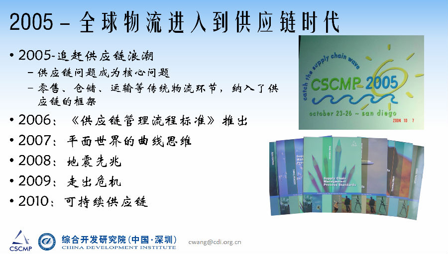 在2005年美国物流学会更名为供应链管理专业协会之后,全球物流进入到供应链的阶段。