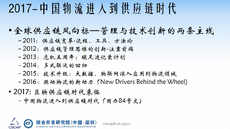 2017年国务院办公厅发布《关于积极推进供应链创新与应用的指导意见》,标志着中国物流业开始全面进入供应链时代。
