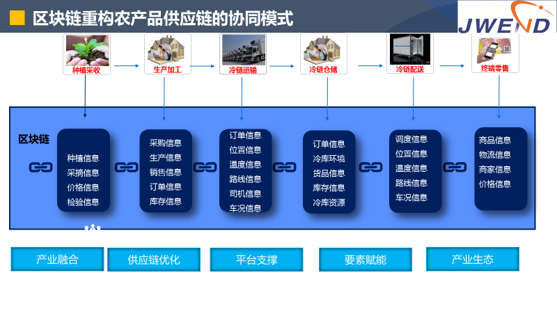 张立冬总监认为区块链可以推动种植采收、生产加工、冷链运输、冷链运输、冷链配送和终端零售等供应链上下游协同,重构农产品供应链。