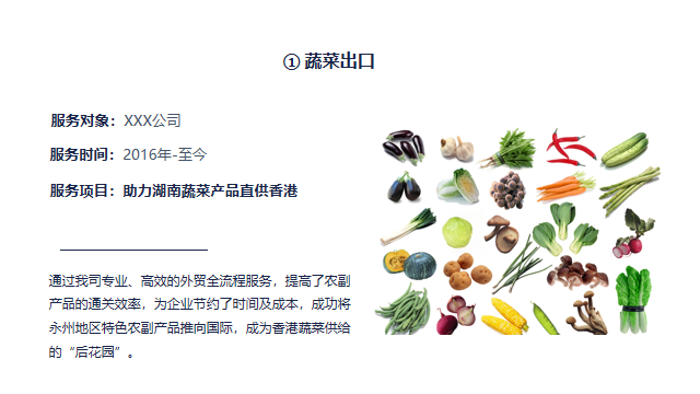 郑璧双总经理介绍了湖南省的一些特色农产品,比如永州地区的蔬菜和桔子罐头、益阳的黑茶、皮蛋、干辣椒,湘西地区的猕猴桃及玻璃椒,常德汉寿的鸡蛋及蔬菜等,分享了外贸综合服务助力农产品走向国际的一些案例。
