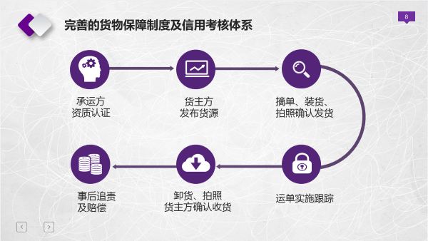 三是完善的货物保障制度及信用考核体系。面对货损货差、货物灭失等风险,中储智运平台拥有较为完善的货物保障流程,其主要流程如下图所示。