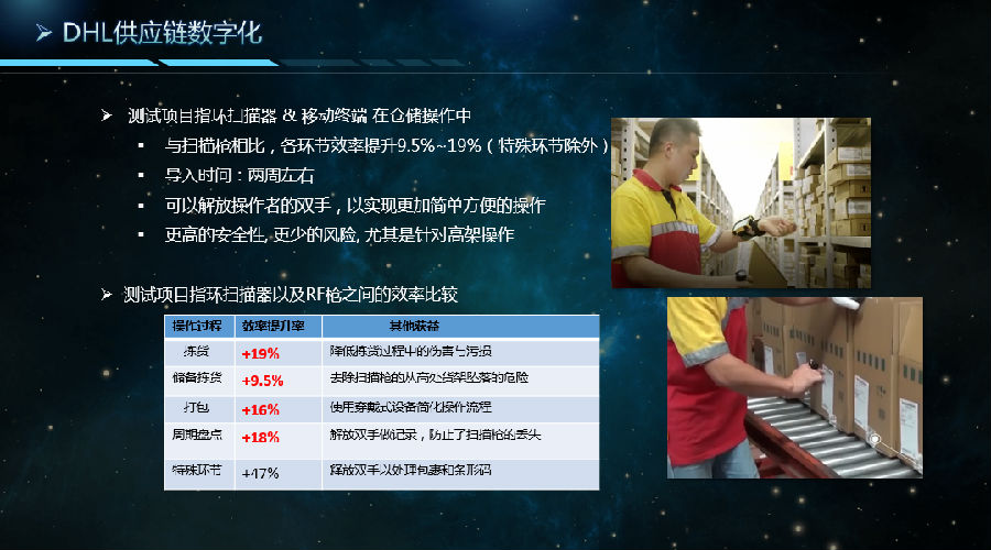 基于穿戴式扫描解决方案可以解放双手、提升效率、改善体验的优势,在高频操作场景以及需要双手配合作业的场景导入京东、小米、良品铺子等电商的打包复核环节操作,以及DHL、欣怡科技等供应链企业的库内作业环节,在实现解放员工双手、提升操作效率同时,改善了员工操作体验。目前,穿戴式扫描解决方案以及国内在这类企业很多场景中推广开来,在电商企业复核打包环节取得6.7-14%的效率提升,在供应链企业中取得9-19.5%的效率提升。