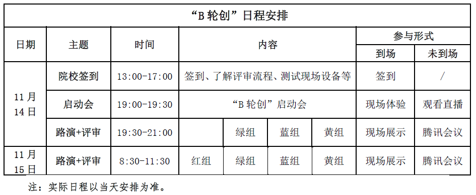 1. 如因参营高校自身原因造成错过本次“B轮创”时间,主办方将不单独安排时间补演。