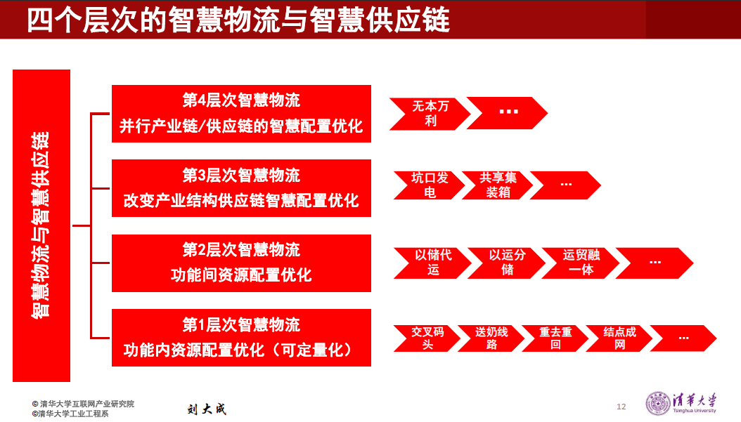 在信息化、网络化和数字化改变世界的过程中,我归纳为智慧供应链应分化为四个层次:第一个层次应是功能内的资源配置优化,如仓储中的箱装球理论、运输中的旅行商路径规划问题等,高校科研院所的优化方法基本上属于这个层次;第二个层次则是功能间的资源配置优化,如大数据、云计算等支持的“以运分储”、“以储代运”等,仅仅是通过定性优化其收益就远超越第一个层次的优化能力,许多靠直觉参与其中的企业就容易成为创新的主体;第三个层次是供应链上下游企业间的资源配置优化,如今年中央提出新基建的目标之一——特高压,就是通过坑口发电、特高压输变电到东南沿海来替代传统的“西煤东运”、“北煤南运”以铁路运输从蒙西、山西和陕西的煤炭到东南沿海地区发电,实现了煤电运一体化。尽管有统计分析,依赖坑口发电+特高压的煤电运一体化总成本并不比传统运输+发电的总成本低多少,但随能源即时转变技术如风电、太阳能风电的使用,其利用效率和低成本存储的技术缺陷被高达1000千伏变压而形成竞争优势。第四个层次则是平行产业链或并行供应链之间的资源配置优化,甚至可以实现先收益后投资的“无本万利”模式,如电影业中利用名导演、名演员先有植入性广告收入而后再进行投资拍摄,真正体现为互联网的“羊毛出在猪身上”。