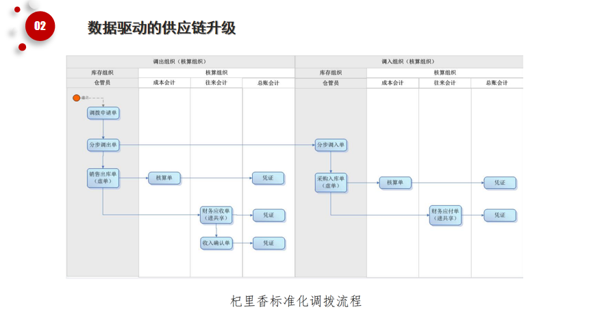 我们在宁夏有2个自建仓,全国有53个分仓,流转速度非常快,一些爆品可以做到零库存。公司布局的线上线下电商平台有40多个,盒马超市也可以看到我们的产品,是全平台、全产业链的企业。关于供应链管理的一些不成熟的经验跟大家分享一下: