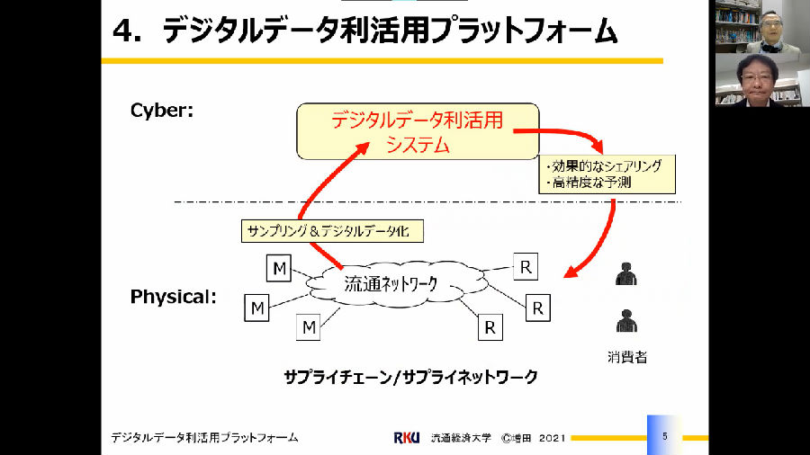 接着他指出将当前物流行业的模式同上述三项技术结合,可以建立一个数字化高智能的物流平台。此处的高智能有两方面的含义,一是在物流的运送方面,减少许多不必要的浪费;二是在客户方面,消除掉那些不满、焦虑等因素。增田教授用一个模型展示该平台: