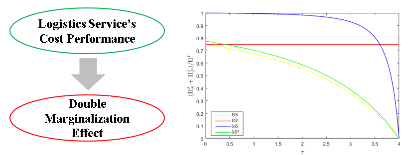 1.当物流服务成本绩效较高时,rs情形下的零售售价格最低,反之ms情形下的零售价格最低。