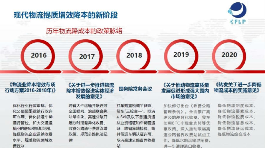 1.站在当下的时间节点,我认为新阶段降低物流成本有重大意义。中国的国民经济,包括物流行业都在进入一个温和增长的阶段。从国际经验看,进一步降低物流成本是经济放缓时期,各个国家抵御压力的重要利润源。