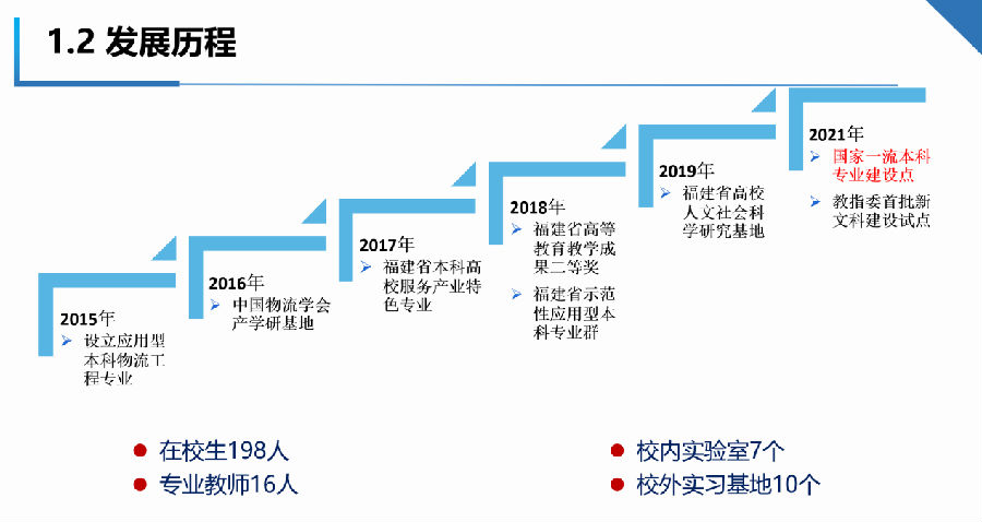 本校一流专业及新文科建设办公室在2021年3月筹建,7月正式挂牌。在新文科引领好一流专业辐射下,不断获批了福建省高校人文社会科学研究基地、福建省实验教学示范中心、中国物流学会产学研基地、厦门市物流与供应链学会秘书处、厦门市物流校企合作服务中心——华厦物流培训学院、教育部“互联网+中国制造2025”产教融合促进计划、教育部1+X证书制度试点等,通过运用系统思维,开展平台整合,实现价值增值。