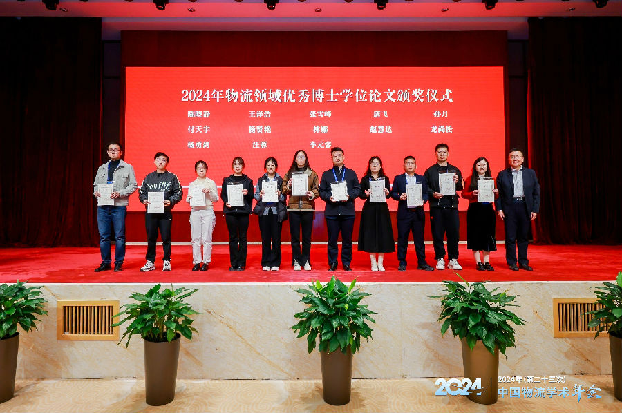 论坛期间,举行了2024年物流领域优秀博士学位论文颁奖仪式。中国物流学会副会长兼秘书长郭肇明、中国物流学会副会长杨国栋、清华大学工业工程系教授赵磊分别为获奖代表颁发证书。颁奖环节由上海海事大学研究生院院长、中国物流学会兼职副会长杨斌主持。
